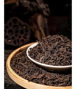 使用松柴旺火烘焙,使茶叶色泽变为乌黑油润,带有松烟香。