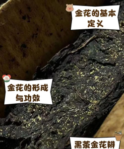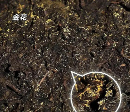 金花原叶黑茶成品茶中,金花均匀附着于茶砖表面,香气浓郁,滋味独特,具有抗氧化、助消化等保健功效。随着存放时间的延长,金花会逐渐增多,品质进一步提升。