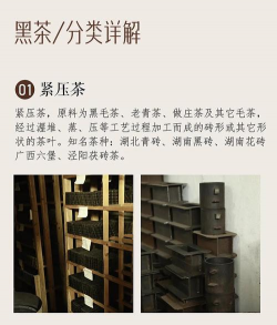 黑茶:属于后发酵茶,经过杀青、揉捻、渥堆、干燥等系列工序制成,需要经过很长时间的自然发酵,从而其叶片的颜色变成黑褐色。