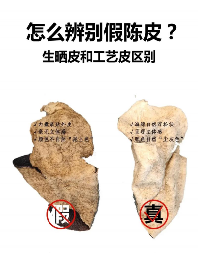 - 真品新会陈皮表面油润透亮,油包饱满且分布均匀,可见自然疤点(台风痕迹)。假货表面暗沉无光泽,油包稀疏或光滑。