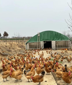 安庆市宿松县有山区土鸡养殖基地,采用“牧鸡鹅”模式,利用大白鹅看护土鸡,提升养殖效率。