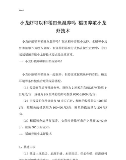 小龙虾和螃蟹 可以一起养,这种养殖模式被称为虾蟹混养。以下是具体的养殖模式和优...