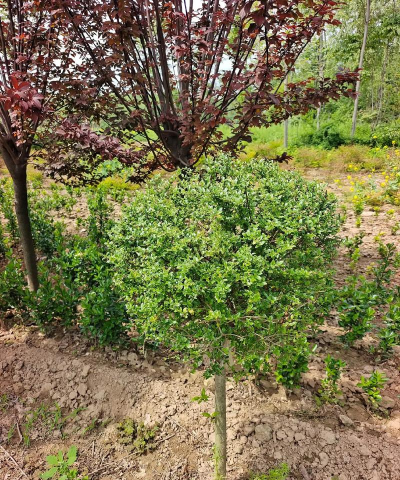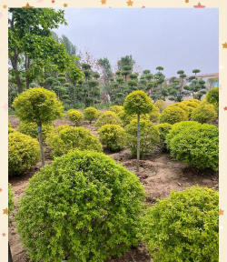 - 红叶李、金枝槐、小叶女贞(球)、大叶黄杨球、金参、玉兰(黄红紫)、腊梅、桂花、青铜栾树等。