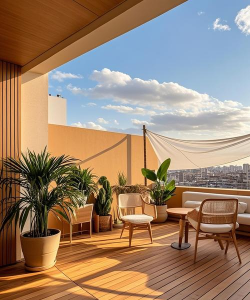 扩展露台为露餐区、待客区或休闲区,配备烧烤架、沙发等设施。 - 小户型建议优先打造多功能复合空间。