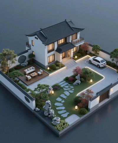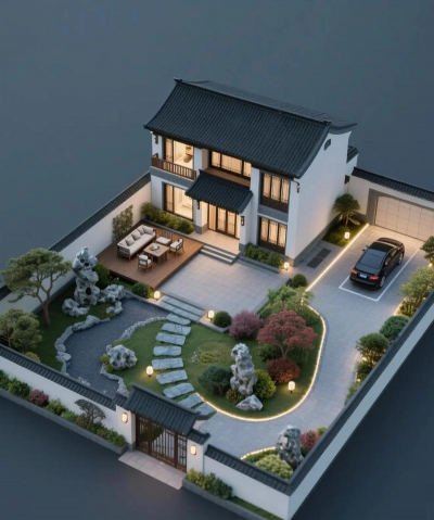 设计农村别墅庭院时,需结合自然环境、功能需求与风水理念,打造既舒适又具有地域特色的空间。以下是综合建议: