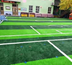 普通学校操场常用充砂型或免充砂型仿真草坪,价格集中在 30-55元/㎡