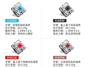 青轴、茶轴、黑轴和红轴是机械键盘上常见的四种轴体,它们在触感、压力和声音等方面有显著的区别: