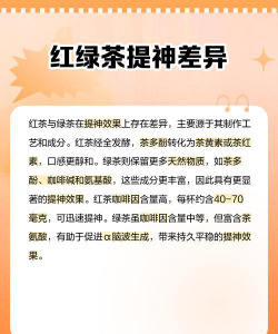 咖啡因含量:绿茶和红茶都含有咖啡因,但绿茶的咖啡因含量相对较高,且茶多酚和抗氧化剂含量也较多,这些成分有助于提高免疫力和抵抗力。红茶的咖啡因含量虽然也高,但由于其茶多酚含量较少,提神效果不如绿茶。