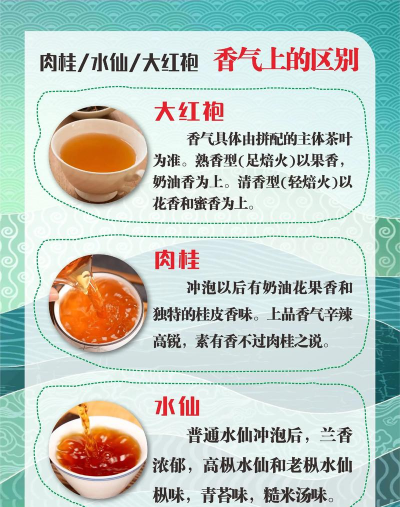肉桂和大红袍是两种不同的茶叶,它们的主要区别包括外形、香气和滋味: