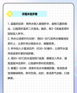 慢慢冲泡:将预热过的茶杯中加入适量的热水,放入茶叶,用85℃左右的热水缓慢冲泡,约1-2分钟。