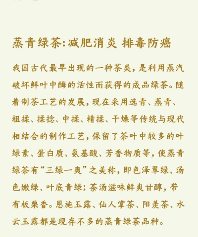 总的来说,绿茶是适合蒸着喝的,不仅能够保留其原始香气和营养成分,还能发挥其保健功效。