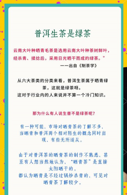 生普洱茶与绿茶的区别主要体现在以下几个方面: