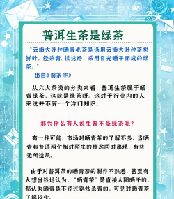 生普洱茶与绿茶在多个方面存在明显的区别: