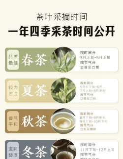 秋季采摘时间:秋季的茶叶采摘时间主要在8月至10月之间,此时茶叶的口感醇厚,香气深沉,具有独特的品质特点。