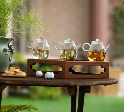 紫砂壶具有良好的保温性和透气性,适合冲泡绿茶。选择紫砂壶时,建议选用段泥、绿泥或朱泥等泥料,壶型以低矮大口为宜,如井栏、仿古、虚扁等。紫砂壶可以避免闷熟茶叶,有利于茶叶的香气和滋味的发挥。