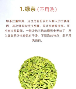茶叶干净程度:绿茶在种植、加工、储运和销售过程中虽然存在污染,但茶叶本身经过多次清洗和处理,相对比较干净,不需要额外洗茶。