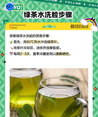 通过以上步骤,你可以充分利用绿茶的抗氧化和抗炎成分来清洁和滋养皮肤,达到美白、紧致和舒缓的效果。