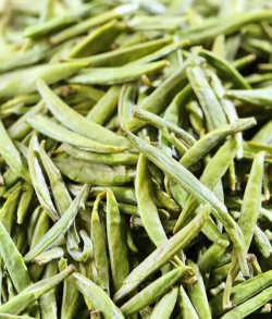 外形:茶叶外形整齐、顺直、圆润,毫茸多,色泽翠绿。条索紧结,颜色鲜绿,质感鲜活。