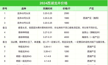 产地关注:西湖产区的龙井茶通常价格较高,但品质也最为上乘。如果条件允许,可以优先考虑西湖产区的龙井茶。