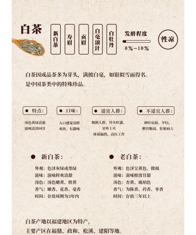 白茶:富含抗氧化剂,有助于延缓衰老、提高免疫力,茶性寒凉,适合热性体质的人饮用。