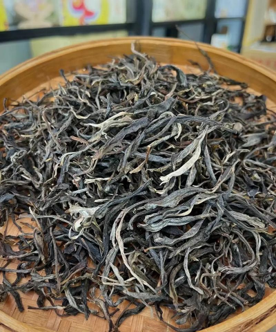 条索紧结油亮,芽头肥壮显毫,松紧适度,利于后期转化。干茶呈墨绿色,陈化后逐渐转为黄绿、黄褐色。