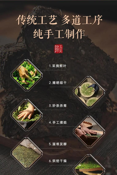 安化黑茶金花的制作工艺融合了传统制茶技艺与微生物发酵技术,需经过多道精细工序...