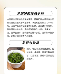 三、影响因素茶叶品质:高山铁观音等优质茶品耐泡性更强,可适当延长冲泡时间;普通茶品建议缩短浸泡时长。