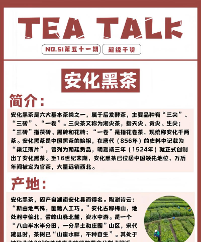 综上,安化黑茶是历史悠久、工艺独特的后发酵黑茶代表,兼具文化价值与保健功能。