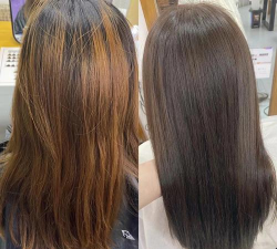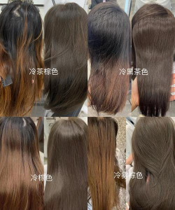:比纯黑色稍浅,带有茶色成分,整体呈现深棕色,阳光下会呈现褐色光泽。显色效果- 栗棕色对白发的遮盖力更强,且褪色速度较慢,适合长期使用。