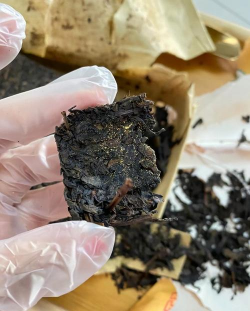茯砖黑茶因渥堆发酵工艺形成独特陈香,同时砖内金花(冠突散囊菌)发酵产生金黄色菌香,两者交织形成复合香气。