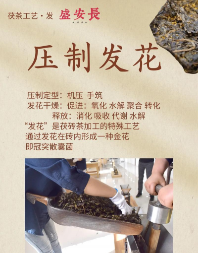 安化黑茶金花的制作工艺融合了传统制茶技艺与微生物发酵技术,需经过多道精细工序...
