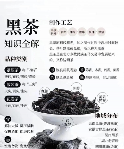 黑茶具有“双项调节”特性,既可清热降火(生茶),又能温胃散寒(熟茶)。生茶口感较涩,熟茶则相对温和,苦味会有所降低。