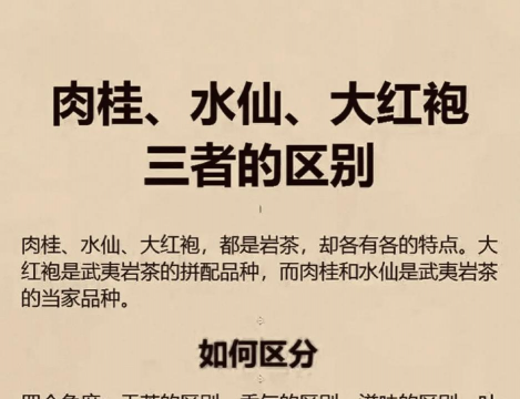 肉桂茶和大红袍是两种不同的茶叶,它们的主要区别在于: