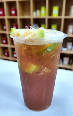 1. 先用热水将锡兰红茶粉冲泡成茶汤。