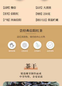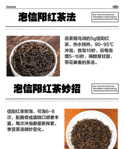 信阳红茶含有丰富的茶多酚、氨基酸、咖啡碱、维生素(如维生素C、B族维生素)、矿物质(如钾、镁、钙等),以及多种抗氧化物质。