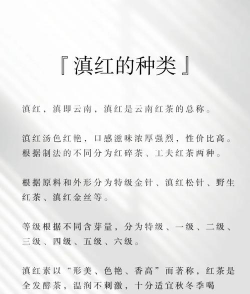 滇红茶,又称云南红茶,是中国著名的红茶品种之一,主要产于云南省。根据其加工工艺、外形特征和品质特点,滇红茶可以分为以下几类: