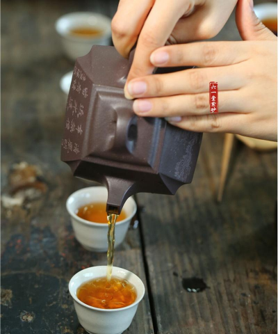 注水方式:沿杯壁缓缓注入,避免直接冲击茶叶