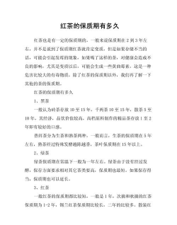 红茶的保质期通常取决于其种类、制作工艺、包装方式以及储存条件。一般来说,红茶属于发酵茶,相比绿茶等未发酵茶,保存时间更长。以下是不同情况下的红茶保质期参考: