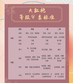 特级大红袍、 一级大红袍、 二级大红袍:这是按品质不同进行的划分。