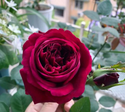 花色与香气:花色为紫红色或深红色,花型复古包子状,花瓣带绒质感,浓香且多季重复开花。