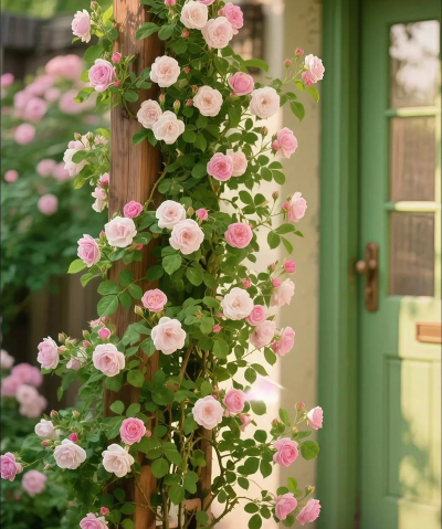 支架与牵引:需人工搭架或绑扎,可用纸条或木棍引导花枝方向,形成垂直或水平花墙。