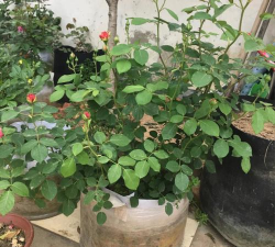 老桩月季修剪: 移栽前修剪枝叶和花苞,减少水分消耗,提高成活率。 盆栽品种选择