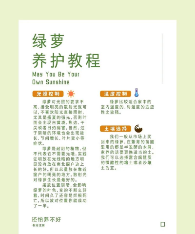 要养好绿萝,需注意以下关键要点,结合多个权威来源整理如下:绿萝喜明亮散射光,...