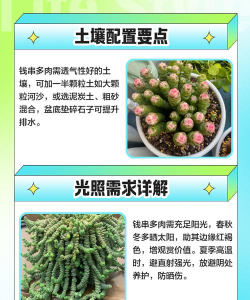 多肉钱串的养殖方法可分为土壤管理、光照与水分控制、繁殖与病虫害防治等要点,具体如下: