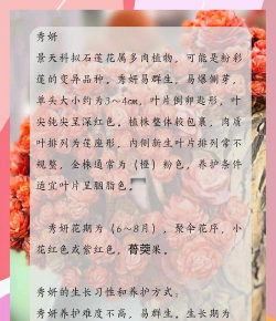 综上所述,养护秀妍多肉需要保证充足的光照、合理的浇水、适当的施肥、使用沙质壤土、保持良好的通风、控制温度、及时换盆和修剪,这样才能让秀妍多肉健康生长,呈现出最佳的观赏状态。