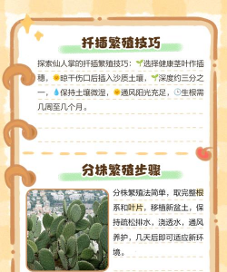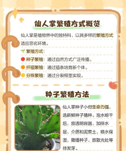 繁殖仙人掌可以通过播种和分株的方式进行繁殖。播种繁殖需要耐心和等待,因为仙人掌的种子发芽时间可能较长。分株繁殖则相对简单快捷,只需在仙人掌的侧芽生长到一定大小时,将其切割下来并重新种植即可。