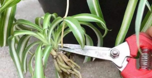 - 分株水养时,剪取带有气生根的小吊兰分株。