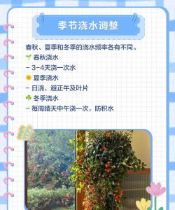 二、浇水管理原则: 保持土壤微湿,见干见湿,避免积水导致根部腐烂。 夏季
