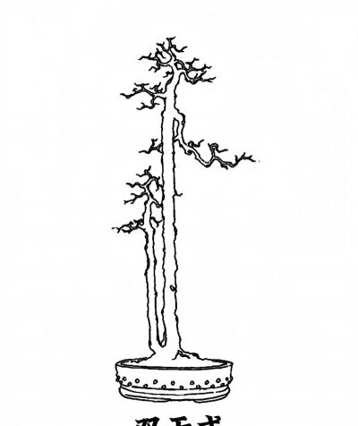 直干式盆景的主干直立或略呈弯曲,要求根四周伸展,枝条向四面八方伸展,层次丰富,枝势有力。适宜表现直干式作品的树种有黑松、五针松、金钱松等。