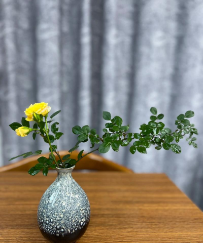 - 选择古朴典雅的花瓶,注意底部有排水孔且大小与花枝匹配。